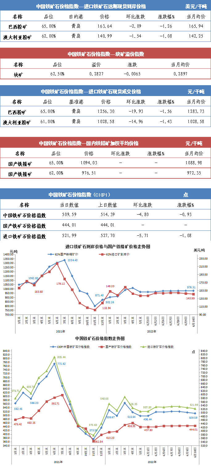 【行業(yè)指數(shù)】6月10日中國鐵礦石價格指數(shù)