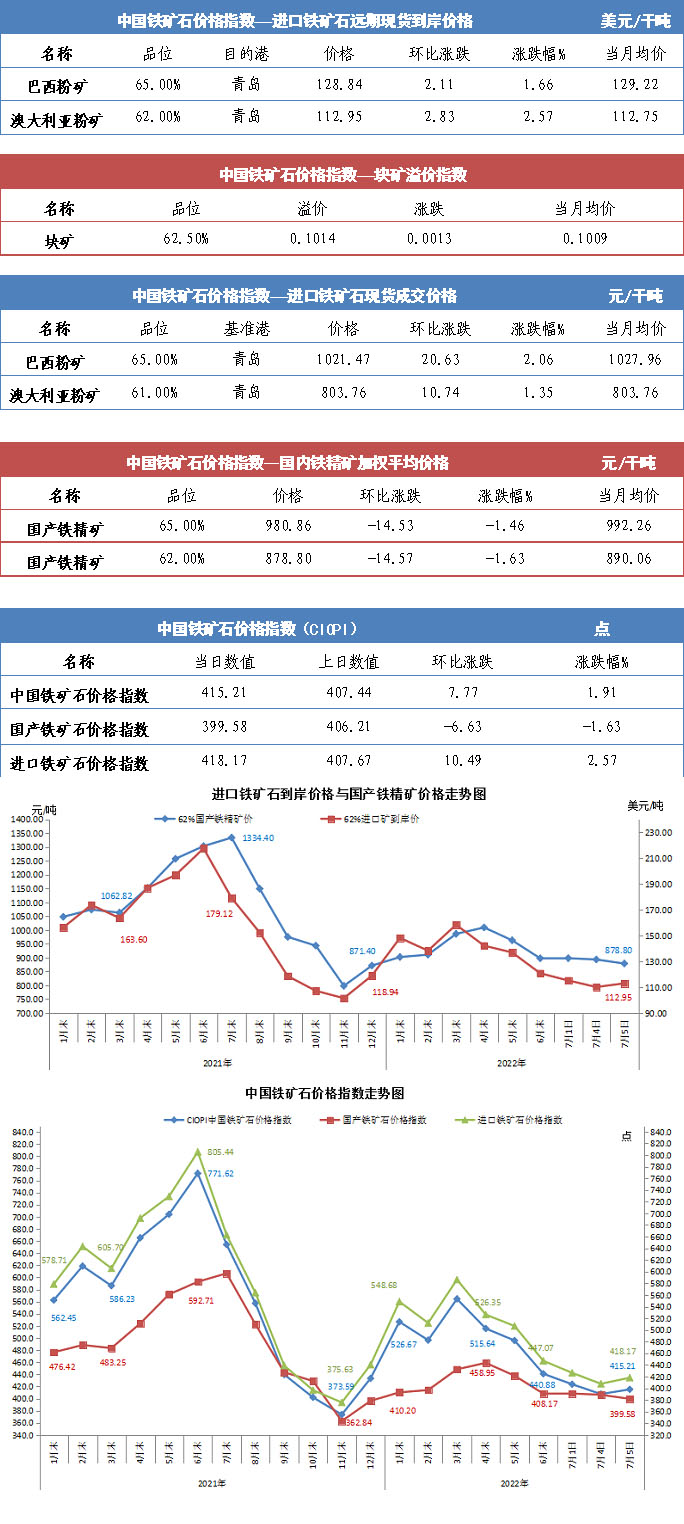 【行業(yè)指數(shù)】7月5日中國(guó)鐵礦石價(jià)格指數(shù)