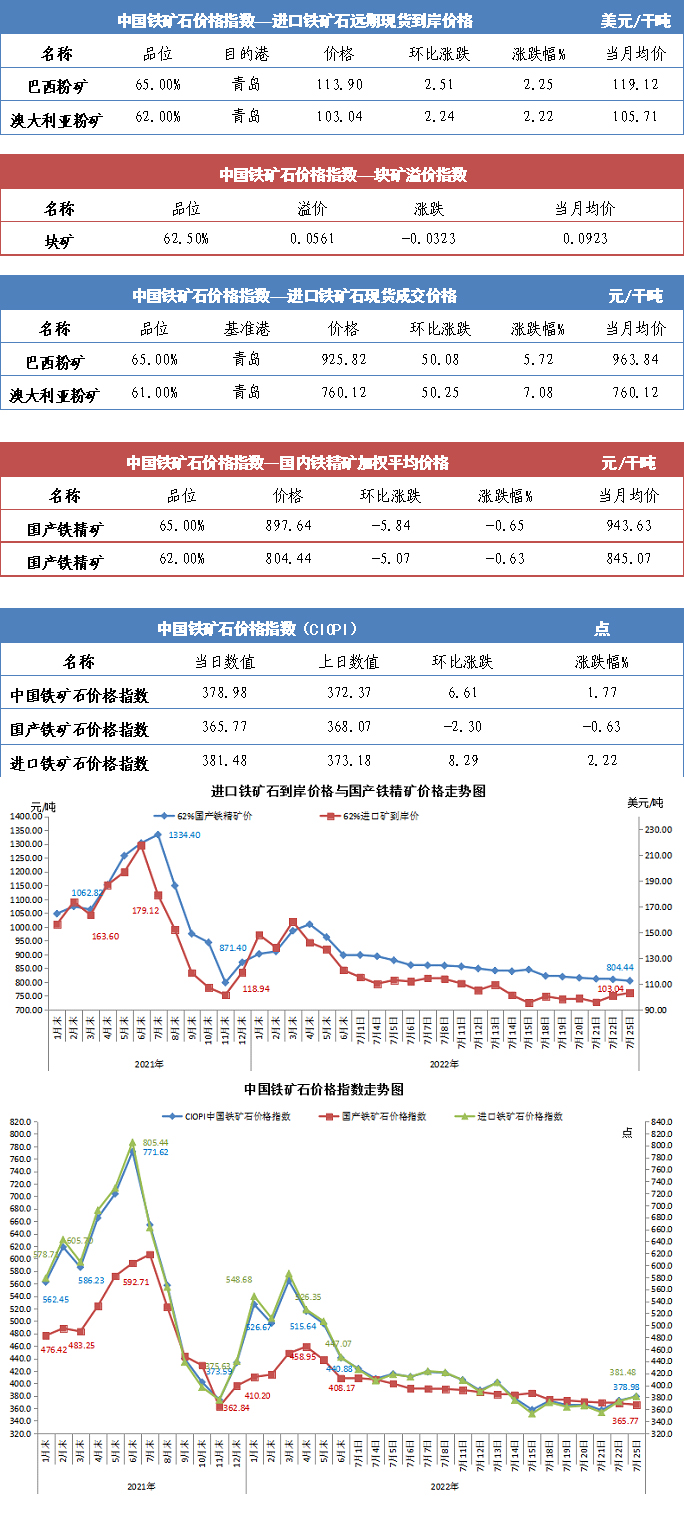 【行業(yè)指數(shù)】7月25日中國(guó)鐵礦石價(jià)格指數(shù)