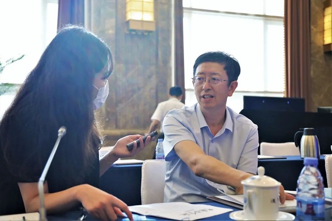 建龍集團副總裁高全宏接受《中國冶金報》記者采訪。