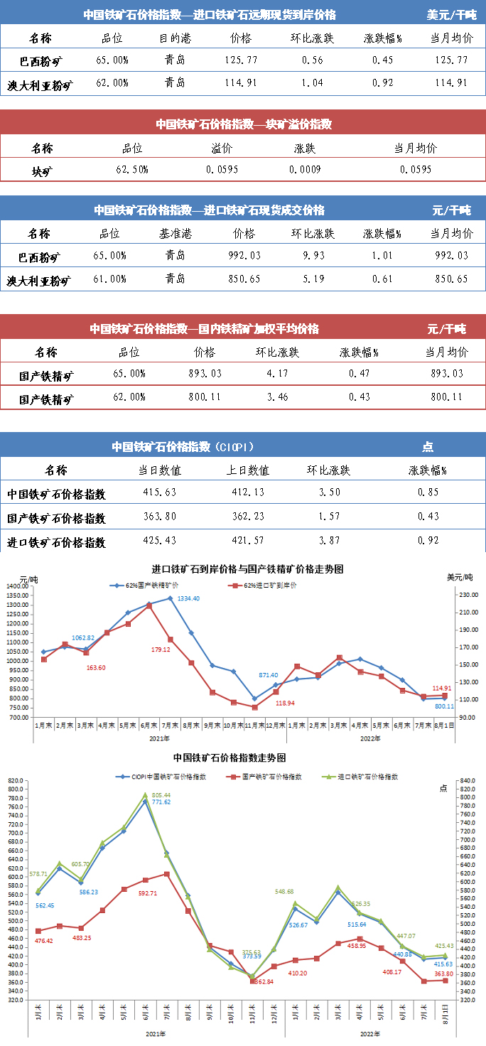 【行業(yè)指數(shù)】8月2日中國鐵礦石價格指數(shù)