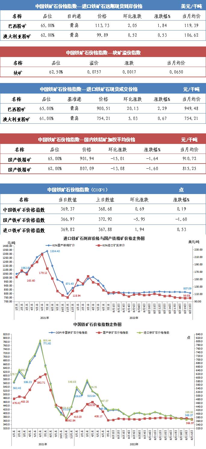 【行業(yè)指數(shù)】8月22日中國(guó)鐵礦石價(jià)格指數(shù)