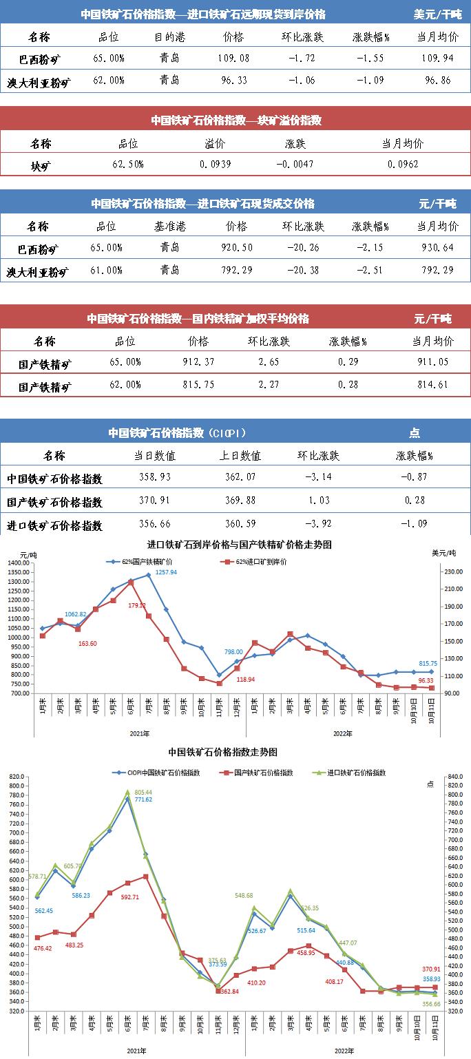【行業(yè)指數(shù)】10月11日中國鐵礦石價(jià)格指數(shù)
