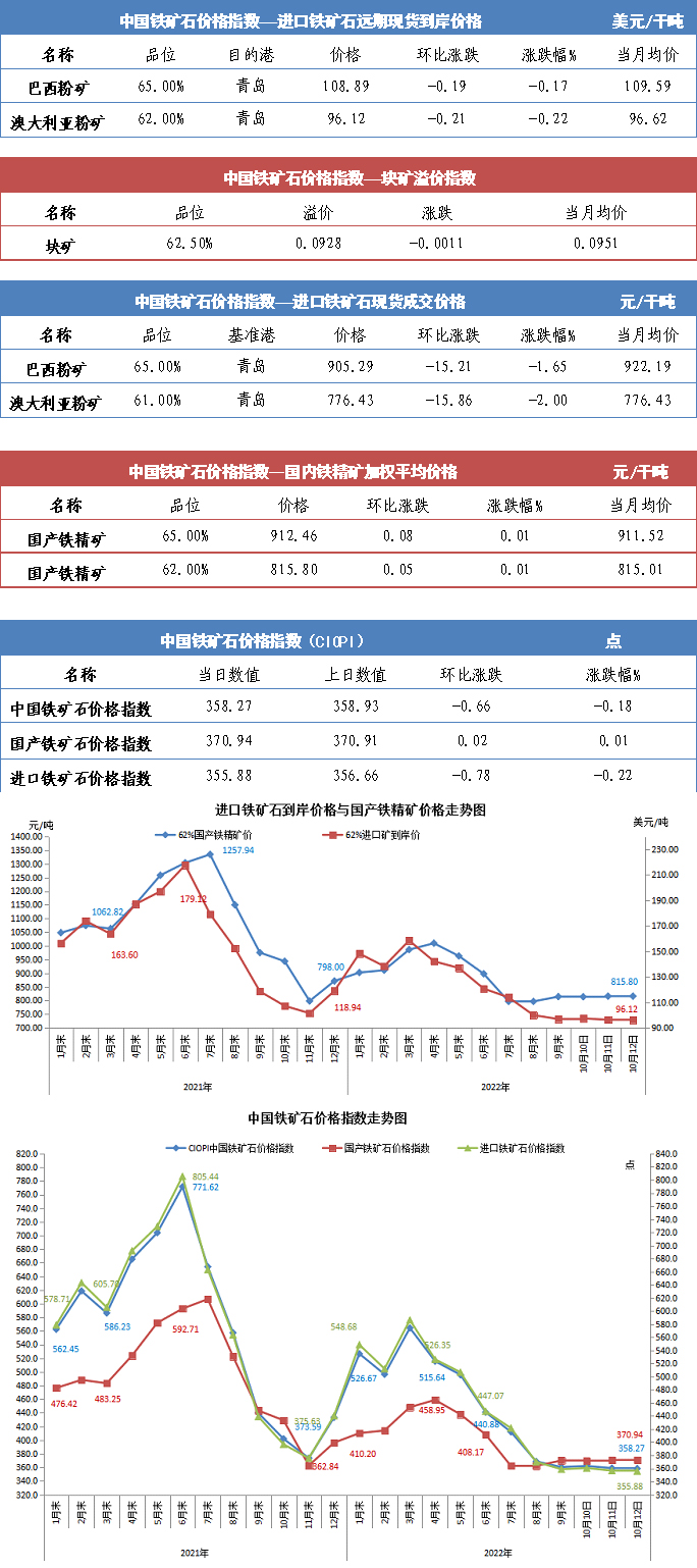 【行業(yè)指數(shù)】10月12日中國(guó)鐵礦石價(jià)格指數(shù)