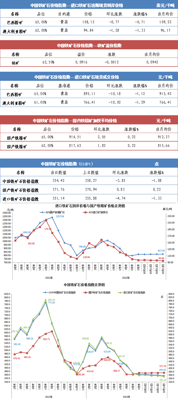 【行業(yè)指數(shù)】10月13日中國鐵礦石價格指數(shù)