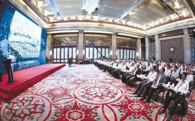 圖為2019年9月7日,在鋼鐵行業(yè)慶祝中華人民共和國成立70周年座談會上,與會嘉賓觀看由中國冶金報社制作的首部鋼鐵行業(yè)宣傳片《中國鋼鐵讓世界更美好》。(曹海艇 攝)