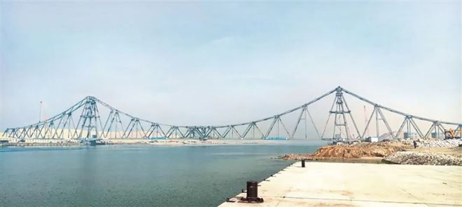 圖為埃及蘇伊士運河雙翼平旋鐵路大橋。(沙鋼 供圖)