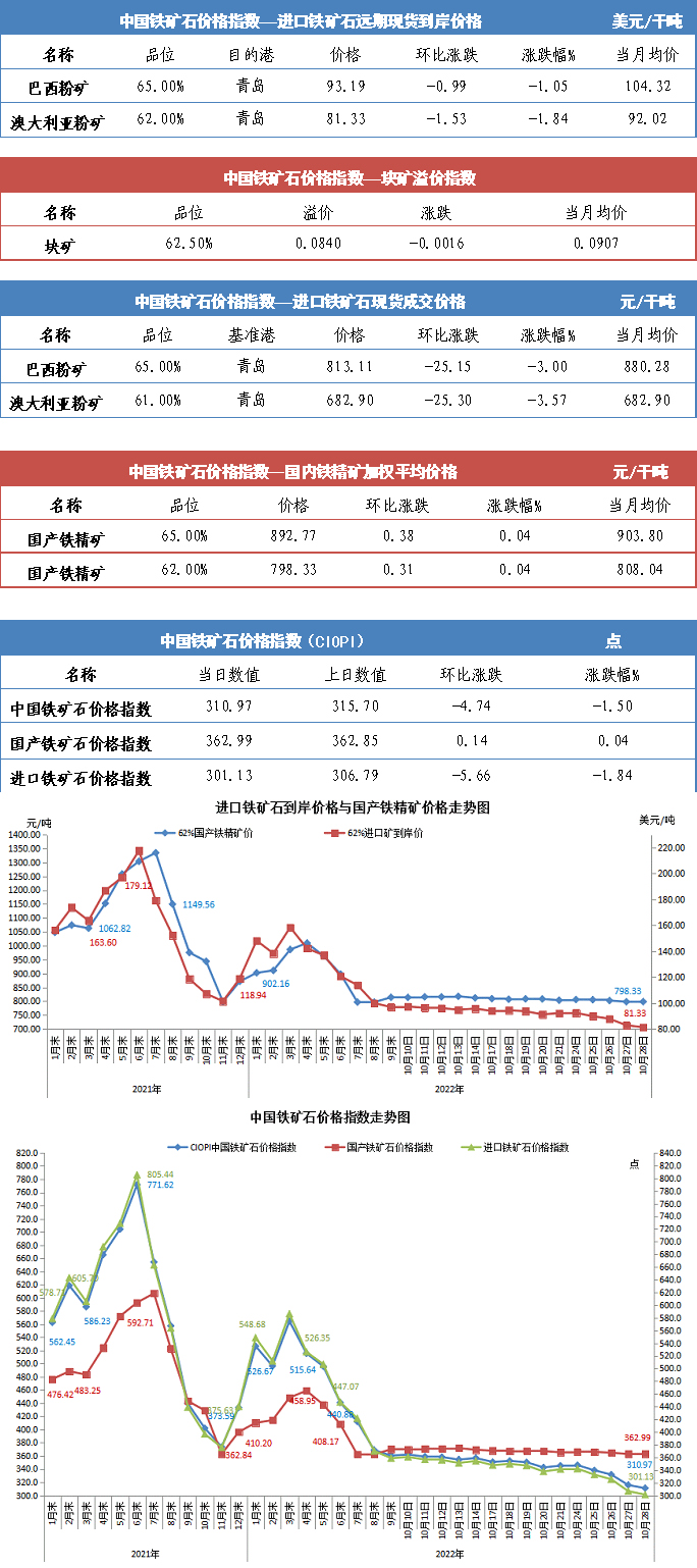 【行業(yè)指數(shù)】10月28日中國鐵礦石價格指數(shù)