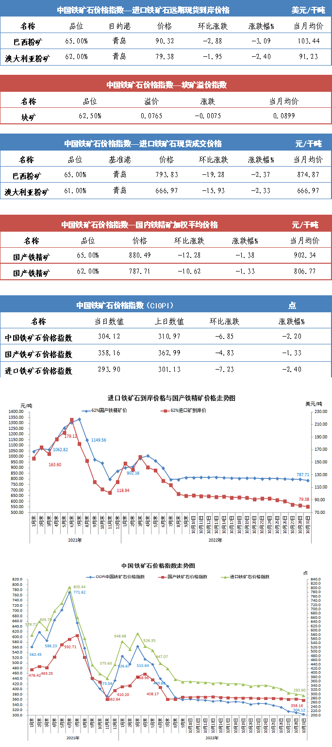 【行業指數】10月31日中國鐵礦石價格指數