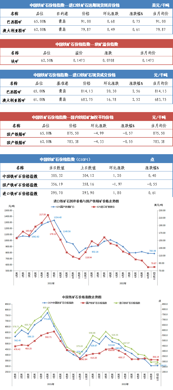 【行業(yè)指數(shù)】11月1日中國(guó)鐵礦石價(jià)格指數(shù)