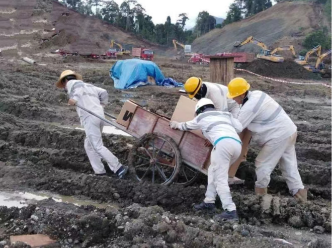 為克服困難,他們逢山開(kāi)路、遇水架橋,迅速調(diào)整工作思路,利用一切可以利用的渠道多方尋找施工資源,科學(xué)組織,攻堅(jiān)克難,確保項(xiàng)目按進(jìn)度推進(jìn)。那時(shí)候,機(jī)具無(wú)法到達(dá)的地方,他們就人背肩扛;車輛無(wú)法通行的地方,他們就用鏟車、挖機(jī)助力。總之,他們?cè)谶@里開(kāi)始了一場(chǎng)轟轟烈烈的大會(huì)戰(zhàn),平均每天超1萬(wàn)名產(chǎn)業(yè)工人奮戰(zhàn)在第一線。