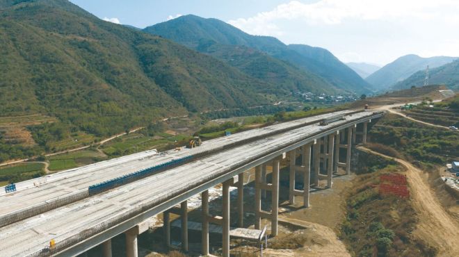 圖為由中國十九冶承建的永勐高速大龍塘大橋工程。