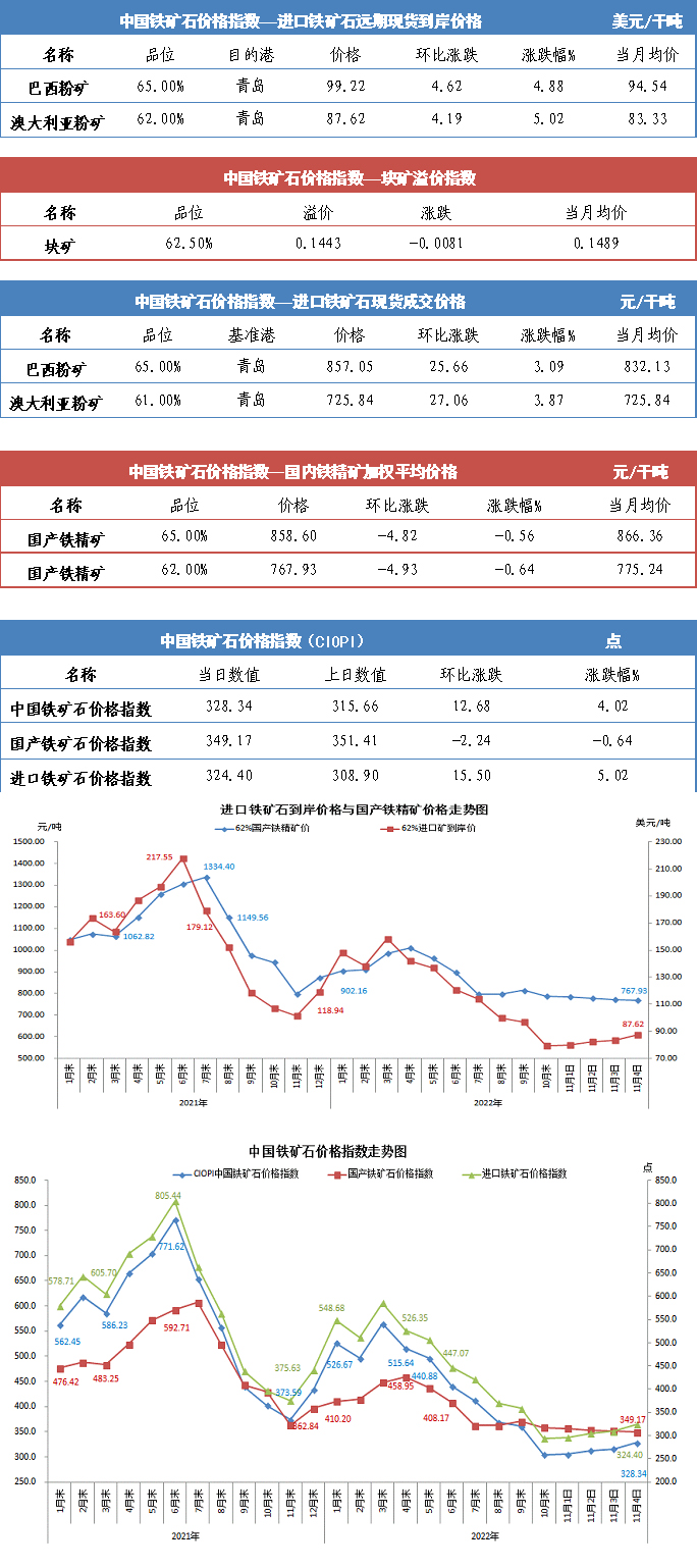 【行業(yè)指數(shù)】11月4日中國(guó)鐵礦石價(jià)格指數(shù)