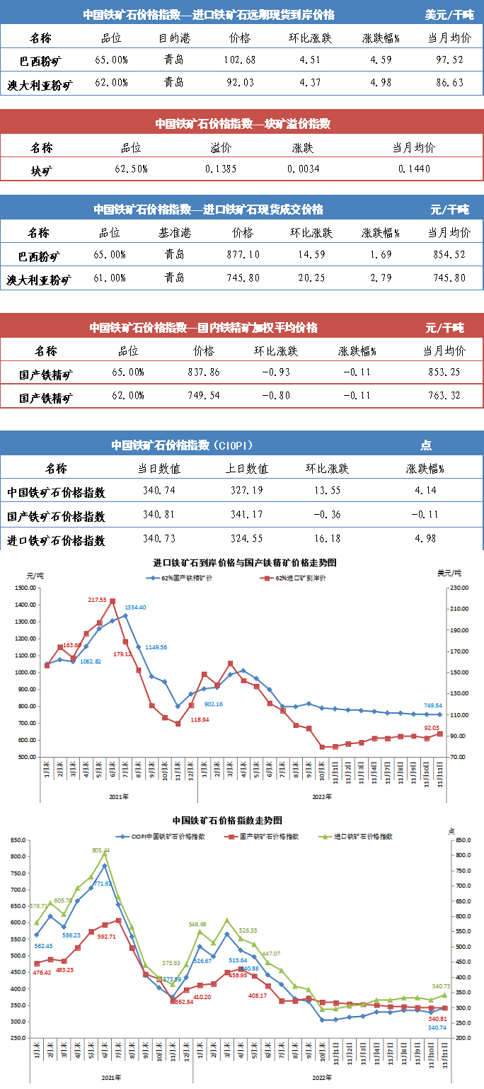 【行業(yè)指數(shù)】11月11日中國鐵礦石價(jià)格指數(shù)