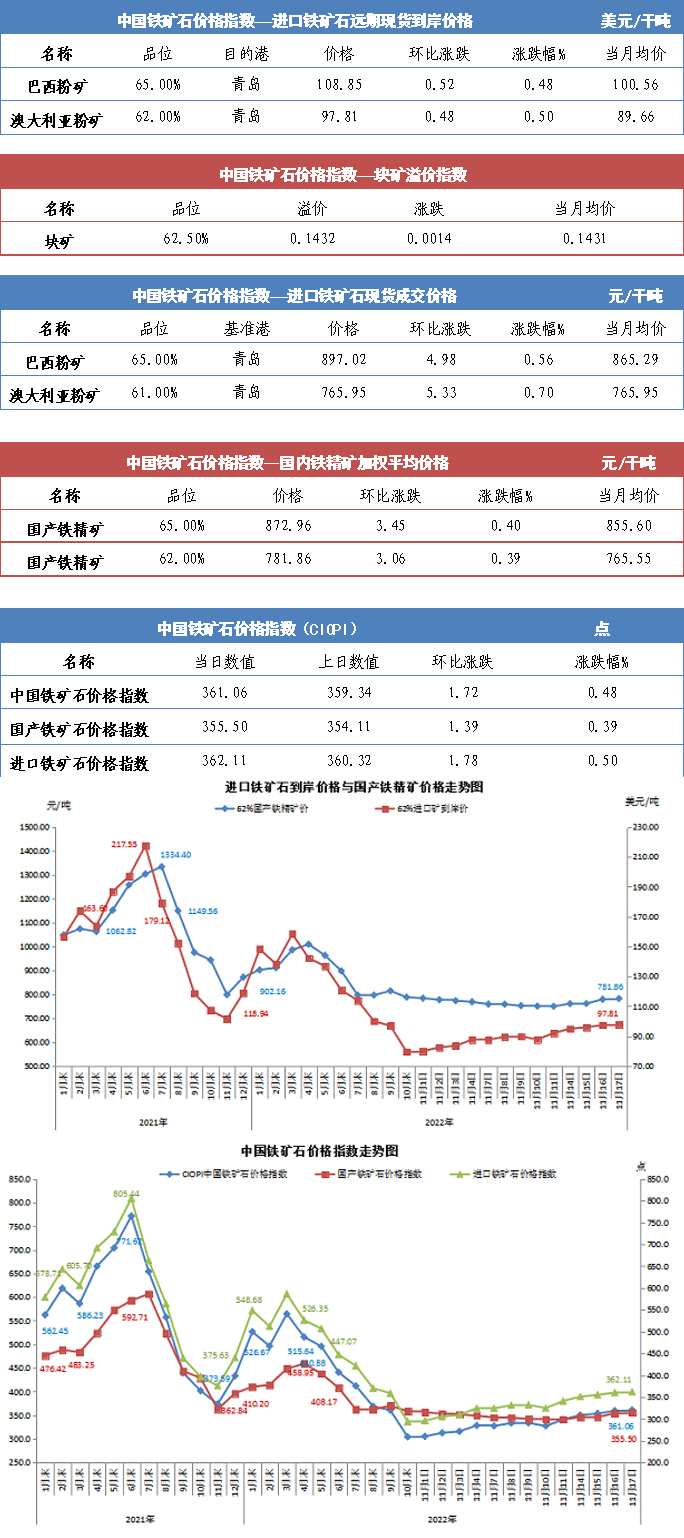 【行業(yè)指數(shù)】11月17日中國鐵礦石價格指數(shù)