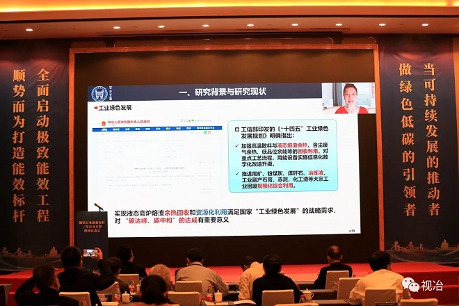 圖為馮妍卉通過視頻方式作《高爐渣高溫高效回收利用技術進展》的報告