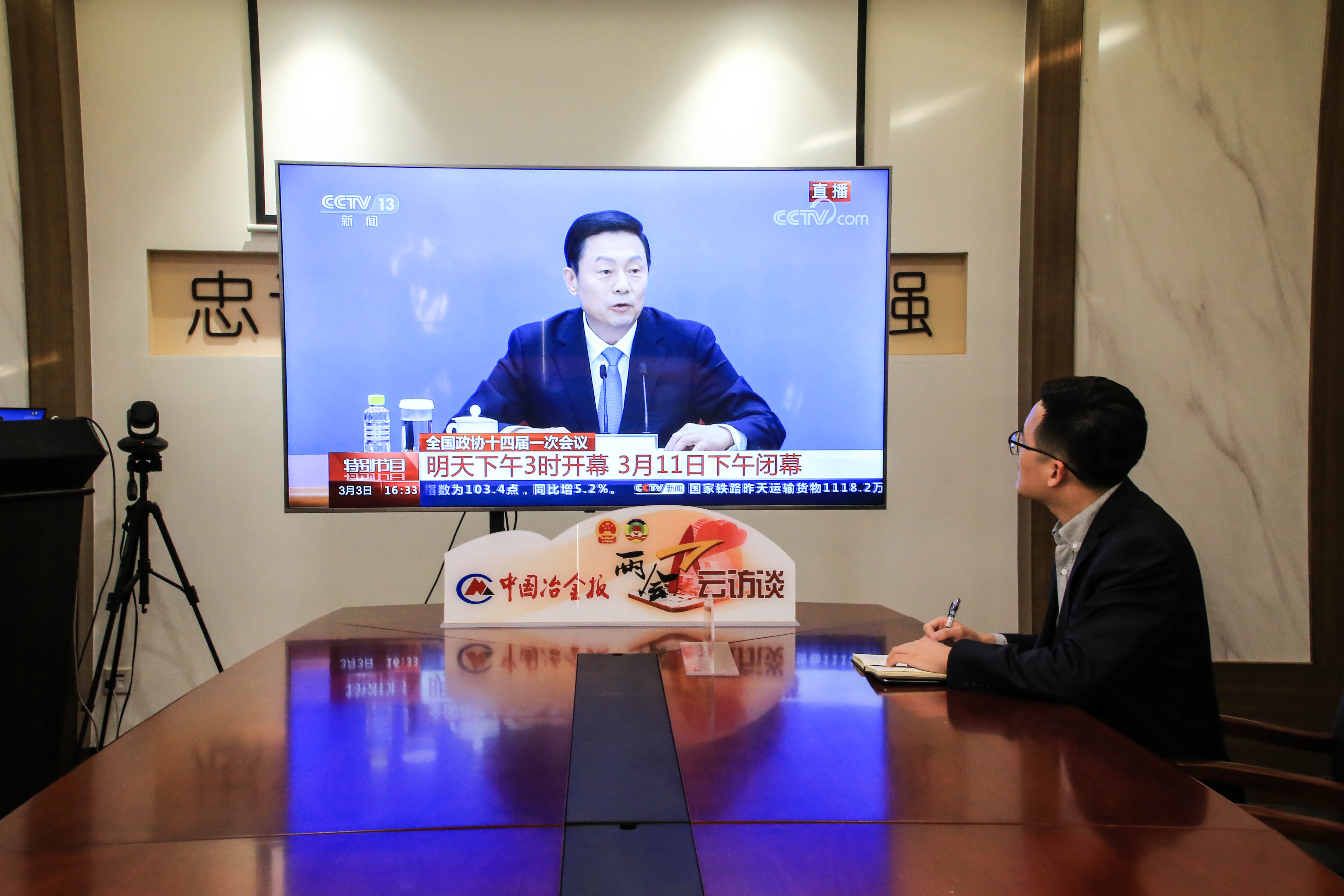 圖為本報兩會報道組記者在線上收看發(fā)布會直播