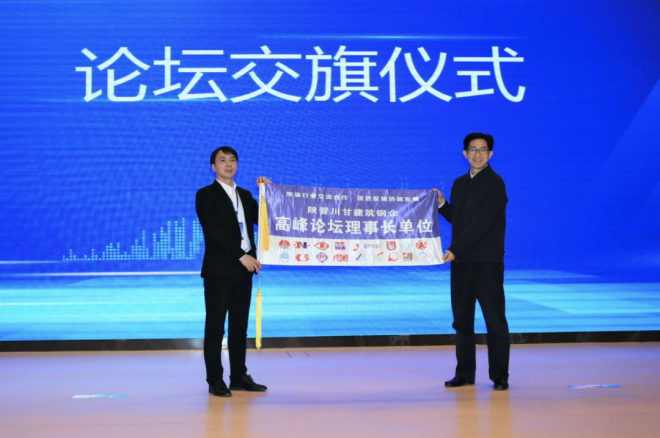 會上,程子建與川威集團董事、成渝釩鈦科技有限公司首席執行官代賓共同完成了會旗交接。