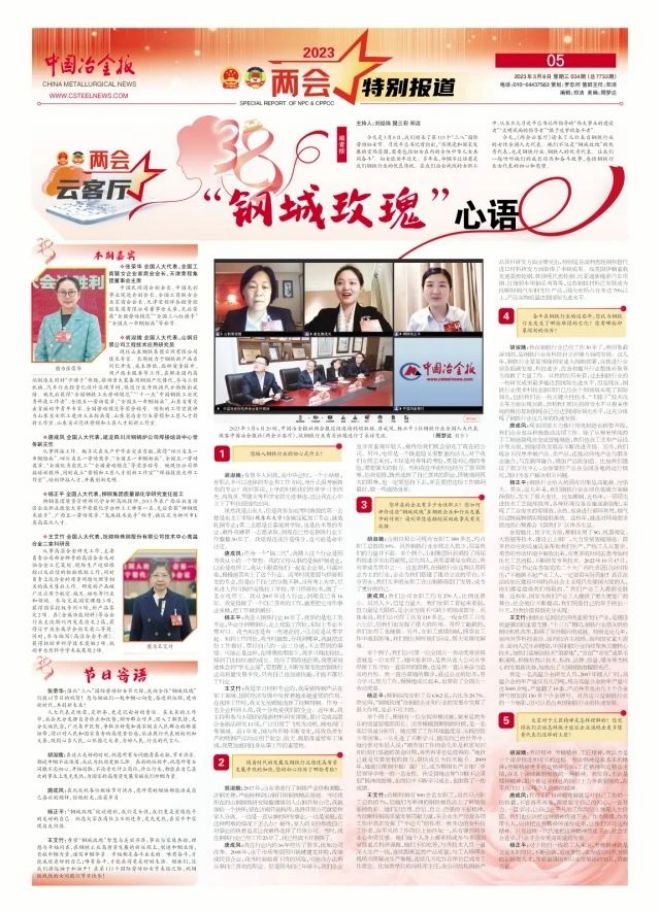 2023年3月6日20時,中國冶金報社兩會報道組邀請到胡淑娥、唐成鳳、楊正平3位鋼鐵行業全國人大代表做客中國冶金報社《兩會云客廳》,就鋼鐵行業有關話題進行了采訪交流。(周夢達 制作)
