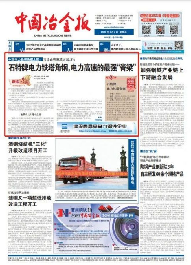 2022年,石特牌電力鐵塔角鋼市場占有率超過52.3%,穩(wěn)居該品種行業(yè)冠軍之位。