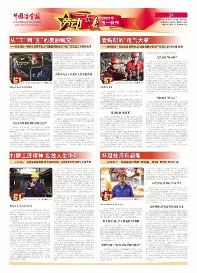 張紅軍,南鋼第一煉鋼廠特級技師、江蘇省首批特級技師,曾任南京市六合區(qū)四屆人大代表,現(xiàn)任南京市政協(xié)委員;曾獲得全國鋼鐵行業(yè)技術(shù)能手,全國機械冶金建材行業(yè)工匠,江蘇省工匠,南京市文明職工,南鋼十佳生產(chǎn)能手、十佳技術(shù)能手等榮譽稱號,也是今年全國五一勞動獎?wù)芦@得者。