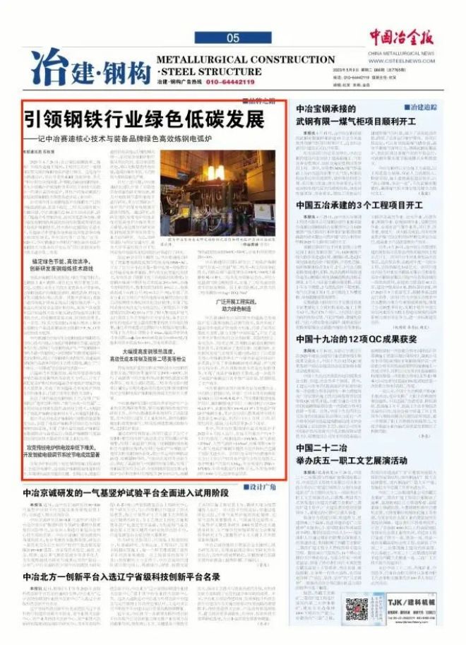 針對國內外全廢鋼電弧爐在煉鋼生產過程中能量消耗高、質量不穩定、二噁英污染等重大關鍵問題,中冶賽迪歷經10余年協同創新,研發了超高功率智能供電、高效深度潔凈冶煉、綠色輸送廢鋼預熱和高效協同控制集成等綠色高效電弧爐煉鋼技術,技術指標達到國際先進水平,在超高功率智能供電和高效深度潔凈冶煉方面國際領先,并在國內外廣泛推廣應用。2020年,中冶賽迪牽頭申報的“綠色高效電弧爐煉鋼技術與裝備的開發應用”項目獲得國家科學技術進步獎二等獎。