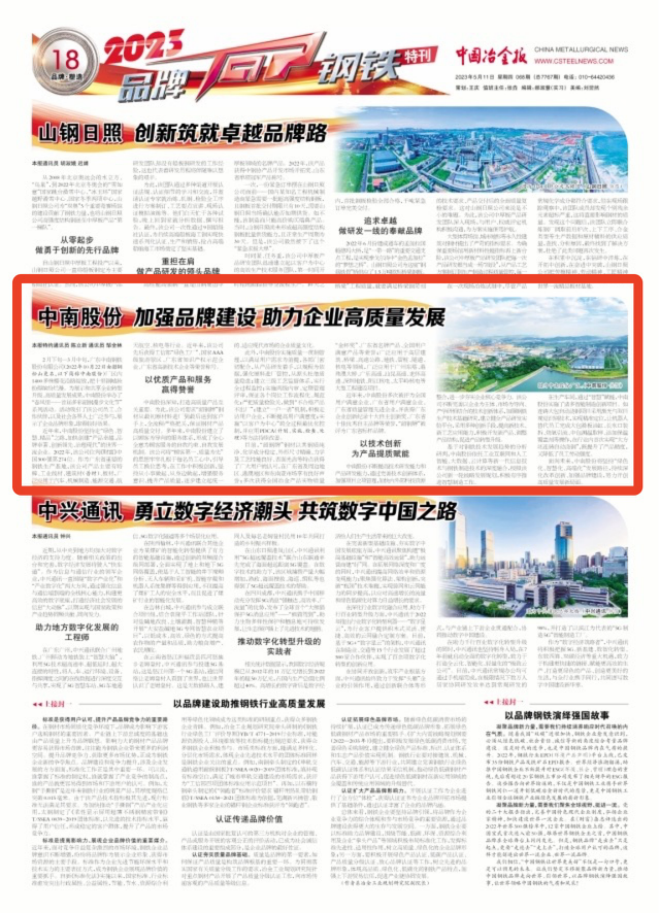 近年來,中南股份堅持走“綠色、智慧、精品”之路,加快創建“產品卓越、品牌卓著、創新領先、治理現代”的世界一流企業。2022年,該公司位列《財富》中國500強第274位。作為廣東省重要的鋼鐵生產基地,該公司產品主要有特棒、工業線材、建筑材(普材)、板材,廣泛應用于汽車、機械制造、能源交通、航天航空、核電等行業。近年來,該公司先后獲得工信部“綠色工廠”、國家AAA級旅游景區、廣東省知識產權示范企業、廣東省高新技術企業等榮譽稱號。