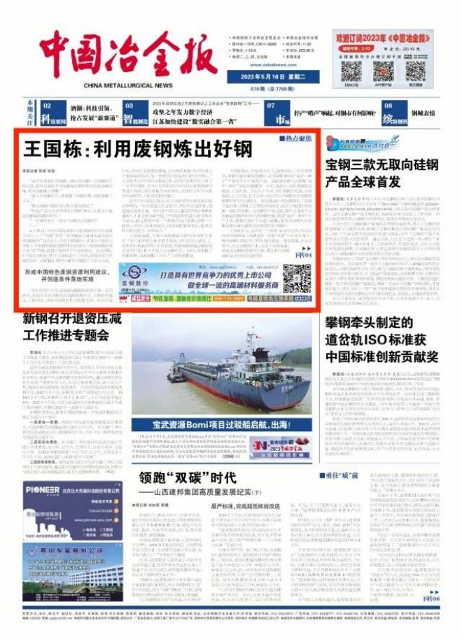 “當前,我國推進廢鋼資源管理、循環和再利用面臨哪些挑戰?”面對《中國冶金報》記者的這一問題,王國棟從廢鋼回收本身和全產業鏈協同兩個方面進行了分析,并給出了解決方案。