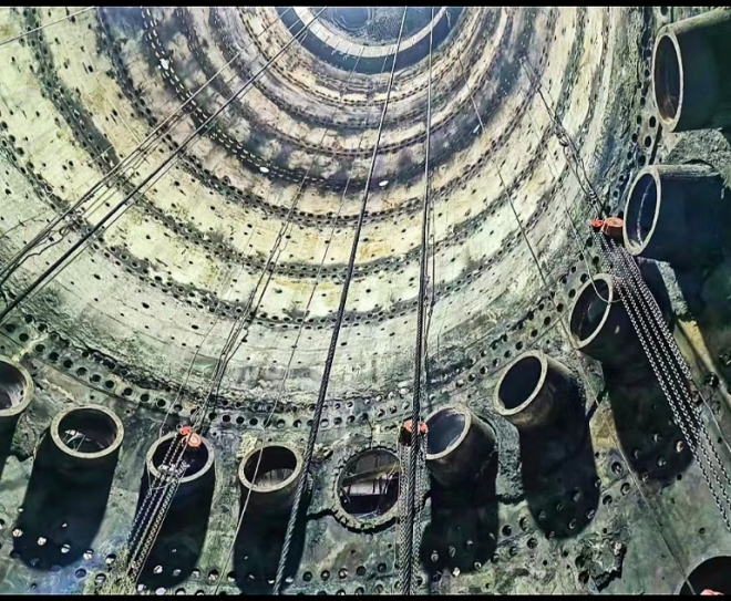 圖為在由聯合榮大總包的陽春新鋼1#高爐快速大修工程中,施工隊完成了全爐冷卻壁拆除工作。