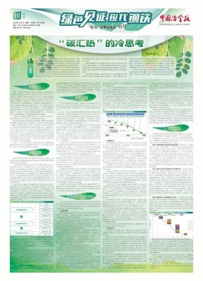 2023年3月26日,河鋼集團與必和必拓在北京簽署鋼鐵行業(yè)CCUS工業(yè)示范項目合作協(xié)議,該項目將引領和推動鋼鐵行業(yè)CCUS產(chǎn)業(yè)發(fā)展壯大,支撐到2030年形成百萬噸級工程應用;2022年6月30日,包鋼(集團)公司200萬噸CCUS一期50萬噸示范項目開工奠基,一期50萬噸示范項目建成后,預計每年可實現(xiàn)CO2減排36.53萬噸,相當于植樹近1900萬棵……可見,即使CCER項目備案尚未重啟,但很多鋼企開展技術碳匯的步伐未曾停止。