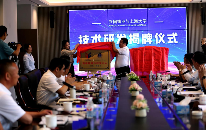 儀式上,狄莎與楊玉柱為“高端特殊球墨鑄鋼件研發(fā)中心”揭牌,張玉文與周國成為“氫冶金低碳技術(shù)研發(fā)中心”揭牌。