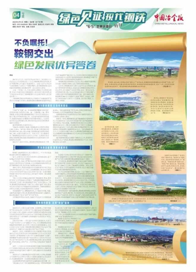 今年以來,鞍鋼集團各級企業全面落實國家“雙碳”戰略,深耕“綠金”藍海取得成效——