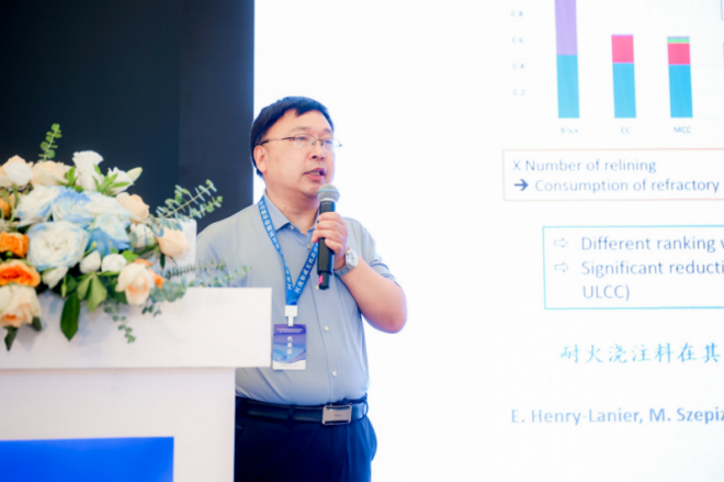甘菲芳介紹了低碳煉鐵技術、低碳煉鋼技術及其它低碳化技術對耐火材料的影響和要求。她表示,耐火材料助力鋼鐵行業綠色低碳發展,既要“綠色低碳制造”又要“制造綠色低碳”。綠色低碳制造即耐火材料產品制造生產中要綠色低碳:品種質量優良化、資源能源消耗節約化、生產過程環保化以及使用過程無害化。“制造綠色低碳”即幫助鋼鐵企業用戶在應用中達到無害環保、長壽命、減少過程溫降等。