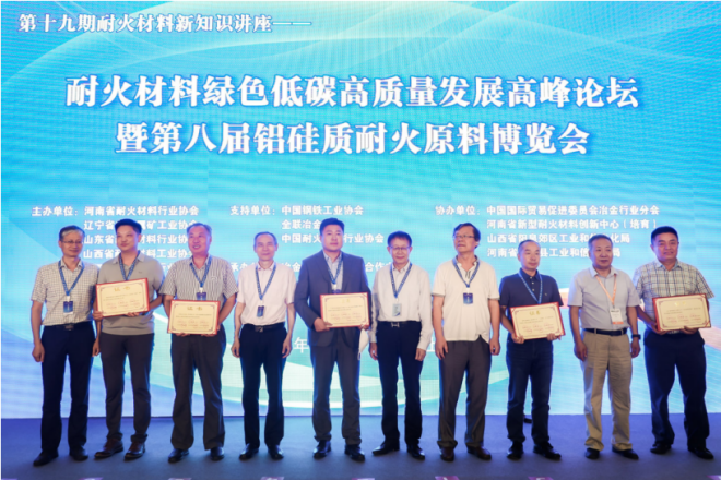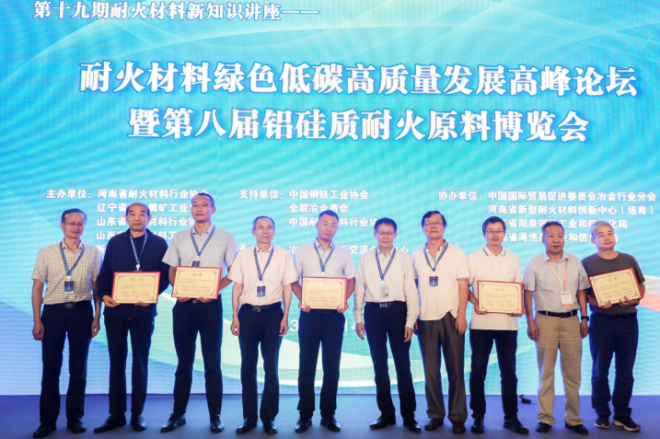 會議公告了第八屆鋁硅質耐火原料金獎43個、設備推薦獎16個。其中,優質焦寶石--山耐集團;致密剛玉--河南三耐;特級高鋁礬土熟料--貴州博通;電熔尖晶石--開封市高達;高效脫模劑Leegent系列產品--武漢善達;礬土均質料--山西孝義鎂鋁;煤系煅燒高嶺土--山西超牌;電卡牌純鋁酸鈣結合劑--河南和成;優質白剛玉--鄭州玉發;莫來石均質料--陽泉金隅通達;莫來石均質料--河南安培;高鋁礬土熟料--新密市久隆;高溫隧道窯--河北北方窯業;燃氣環保節能循環干燥窯--江蘇華榮達;全自動布料機--遼寧嘉華;“元和牌”全自動液壓機--淄博元和;混合造粒設備--青島森泰科;X熒光光譜儀--江蘇天瑞;耐火材料智能生產轉運系統--鄭州慧業;耐火材料智能混配料系統--鄭州紐路普公司設備(技術)公司20家企業代表獲獎單位在臺上領獎(排名不分先后)。