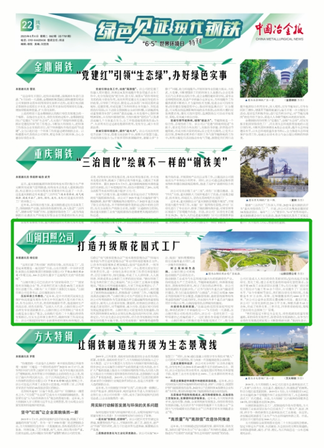 壓實環保工作責任。“近年來,黨中央將黃河流域生態保護和高質量發展作為事關中華民族偉大復興的千秋大計,作為全國人大代表,我將積極履職盡責,推進鋼材生產向高品質、綠色化轉型。”全國人大代表、山鋼日照公司產品研發專家胡淑娥表示,山鋼日照公司牢固樹立“綠水青山就是金山銀山”理念,全面踐行黨的二十大提出的綠色發展路徑,壓實生態環保主體責任,確保環保工作高效運行。該公司根據國家和行業新頒布的環保標準和規范,先后修訂“廢氣排放管理辦法”“廢水排放管理辦法”“環境污染事故與責任追究管理辦法”等12項環境管理體系文件,讓自身環境管理體系更加規范;堅持“黨政同責、一崗雙責”環保工作原則,每年與各生產廠、中心及相關部室簽訂環保責任書,進一步細化各單位環保工作責任和管理職責,層層分解目標、細化措施,形成了人人講環保、人人抓環保、環保成果由全體職工共享的良好局面。“做好環保工作是為我們職工自己謀福利。”該公司職工王鋒深有感觸地說,“現在公司環境越來越好,大家工作起來更舒心了。”