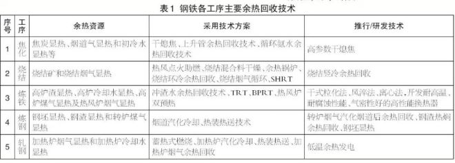 其中,鋼鐵余熱余能資源包括各種煙氣(廢氣)攜帶的顯熱(包括高爐煤氣、轉爐煤氣、焦爐煤氣等可燃氣體),最終軋制成材或材前鐵水、鋼水、坯料具有的顯熱,燒結礦、球團礦具有的顯熱,高爐渣和鋼渣等熔渣顯熱,生產中各種冷卻水及產生的蒸汽攜帶的熱能,高爐爐頂煤氣的余壓,少許帶有壓力的冷卻水,等等。