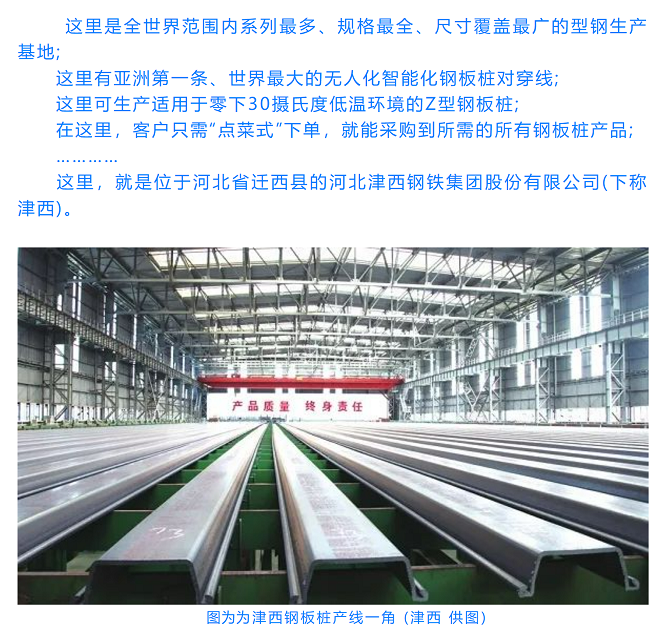 至此,從下游“最后一公里”的綠色樁基工程應用,到鋼板樁產品的研發、設計和生產制造,津西擁有了世界領先的型鋼產業鏈。