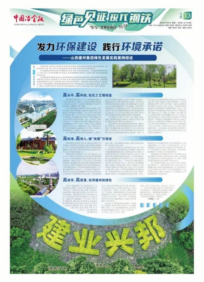 大力發(fā)展提標(biāo)升級(jí)改造是作為鋼鐵企業(yè)實(shí)現(xiàn)“雙碳”目標(biāo)的有效途徑。山西建邦集團(tuán)有限公司(下稱建邦集團(tuán))作為傳統(tǒng)鋼鐵生產(chǎn)型企業(yè),不斷發(fā)揮戰(zhàn)略引領(lǐng)作用,為實(shí)現(xiàn)“雙碳”目標(biāo)貢獻(xiàn)著重要的支撐力量。
