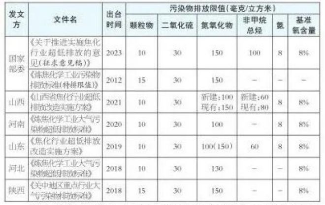 在打贏藍天保衛戰的要求下,各地方政府尤其是焦化產能比較集中的重點地區,對焦化行業的大氣污染物排放早就提出了相關要求。