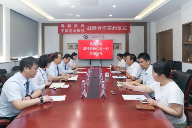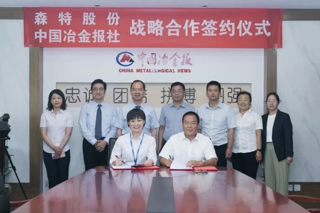 7月14日,森特士興集團股份有限公司(以下簡稱森特股份)與中國冶金報社簽訂戰略合作協議。森特股份創新事業部總經理郝冰與中國冶金報社黨委書記、社長陳玉千分別代表雙方在戰略合作協議書上簽字。