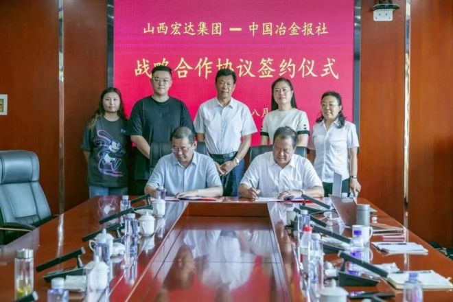 8月2日,山西宏達鋼鐵集團(以下簡稱宏達鋼鐵)與中國冶金報社簽訂戰略合作協議。未來,雙方將在企業全媒體宣傳推廣、品牌塑造、新技術引進、信息咨詢等方面開展全面、深入的合作。在宏達鋼鐵董事長張會民的見證下,宏達鋼鐵總經理劉世峰與中國冶金報社黨委書記、社長陳玉千分別代表雙方在戰略合作協議書上簽字。