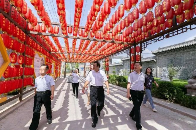 圖為陳玉千一行參觀宏達鋼鐵所在地“小張村”村建文化走廊