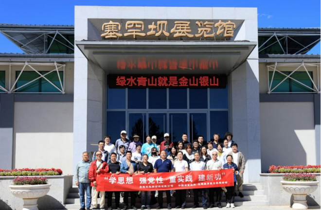 圖為中國冶金報社一行在塞罕壩展覽館門口合影。