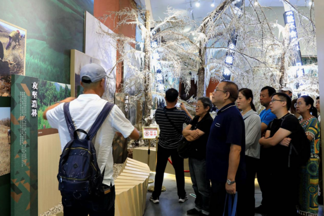 圖為中國冶金報社一行在塞罕壩展覽館參觀。