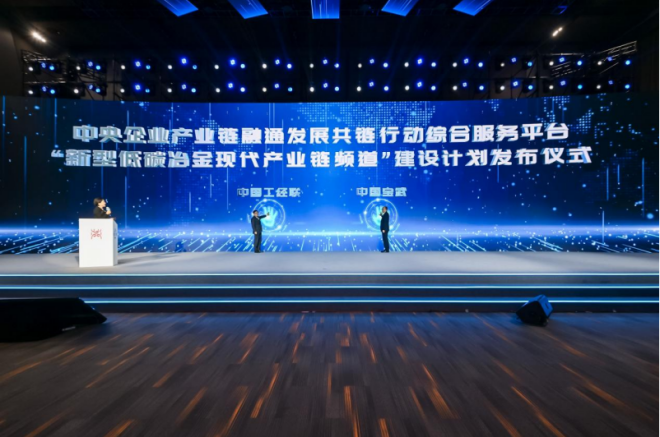 圖為中央企業(yè)產(chǎn)業(yè)鏈融通發(fā)展共鏈行動綜合服務(wù)平臺“低碳冶金現(xiàn)代產(chǎn)業(yè)鏈頻道”建設(shè)計劃發(fā)布儀式