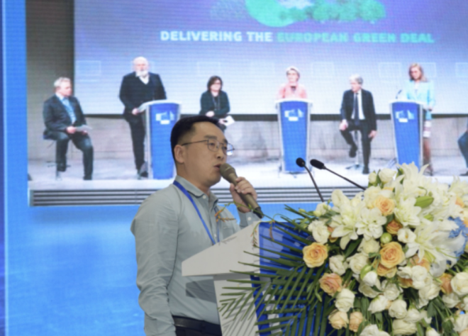 天合光能中國區分銷解決方案經理沙國超做了題為《智慧能源、零碳鋼鐵--天合智慧能源鋼鐵行業多場景解決方案》的主題演講,跟與會者分享了天河光能的產品和解決方案。