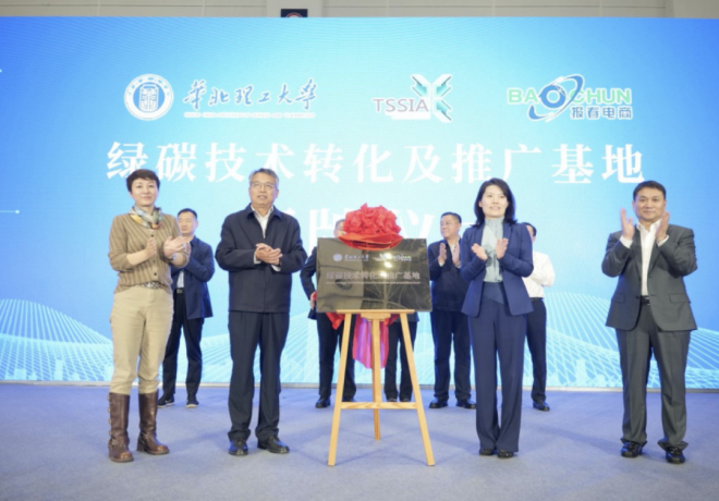 會上,進行了華北理工大學、唐山市鋼鐵工業協會以及報春電商攜手共建的綠碳技術轉化及推廣基地揭牌儀式,該基地將促進綠色低碳科技成果在唐山鋼鐵行業的應用轉化,以加速構建綠色低碳循環發展的產業體系。