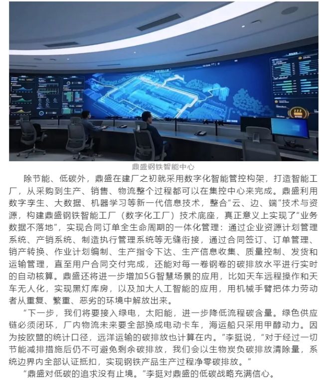 “我們投建鼎盛鋼鐵,就是為了在低碳綠色鋼鐵領(lǐng)域取得先機。”李挺說。