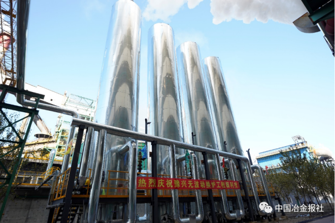 圖為由豫興公司建設的遼寧鞍山寶得鋼鐵公司1080m3高爐熱風爐無波動換爐裝置配套的儲氣罐設備。