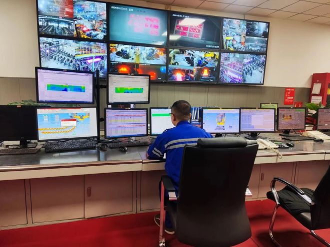 走進熱軋作業部,精軋機工作輥正在被換輥小車緩緩拉出,換輥操作緊鑼密鼓、有條不紊。雖然此時精軋機正處于停運狀態,但是坐在控制室內的精軋區域工程師李冰洋并沒有感到一絲放松。他時而緊盯電腦屏幕,時而觀察窗外的換輥場景。因為11分鐘后,精軋機將再次啟動投入生產。如此“快速換輥”是稀土鋼板材廠提升熱軋作業率的重要措施之一。1月份,該廠熱軋軋制節奏控制在110秒每塊鋼,較2023年加快了10秒,一個小時就可以多軋3塊鋼。熱軋機組作業率也達到了86.56%,是機組建成投產以來最高值。